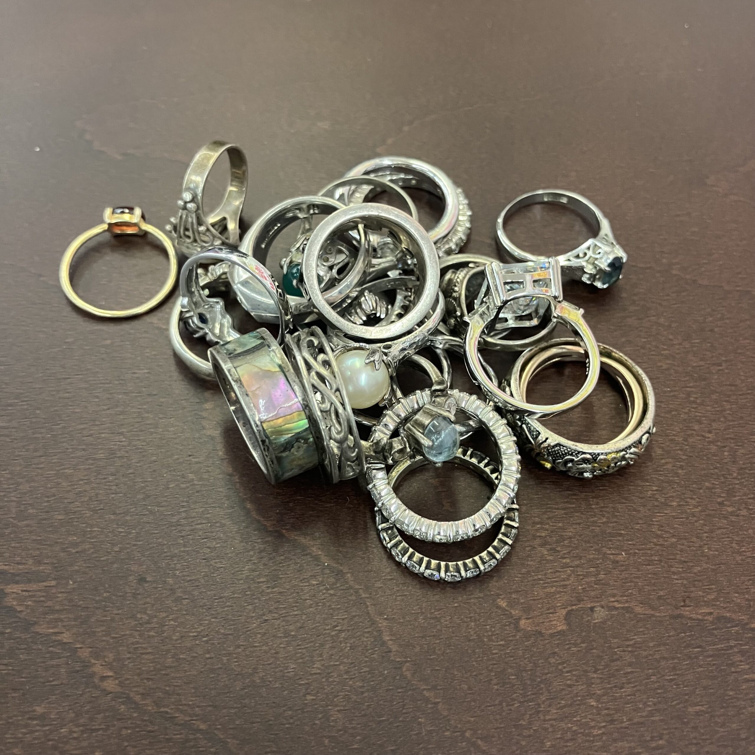 今回お買取したのは、シルバー925のリングを中心としたアクセサリーのまとめ売りです。パール付きのフェミニンなデザインから、彫りの深いエスニックなもの、シェルが埋め込まれたボリュームのあるリングまで、多種多様なお品物をお持ち込み頂きました。1点1点では評価が難しいシルバー製品も、まとめてお持ち込み頂くことで、しっかりとした買取金額をご提示することが可能です。