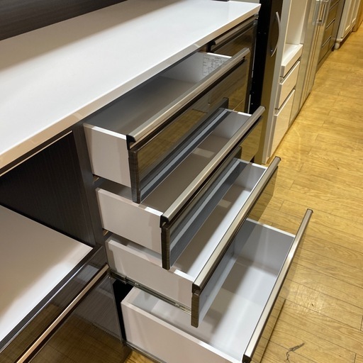 今回は【🐖ワイド🐖近藤産業 レンジボード 幅140cm ハイグロス ソフトクローズ モイス ハイタイプ】をお買取りさせていただきました!